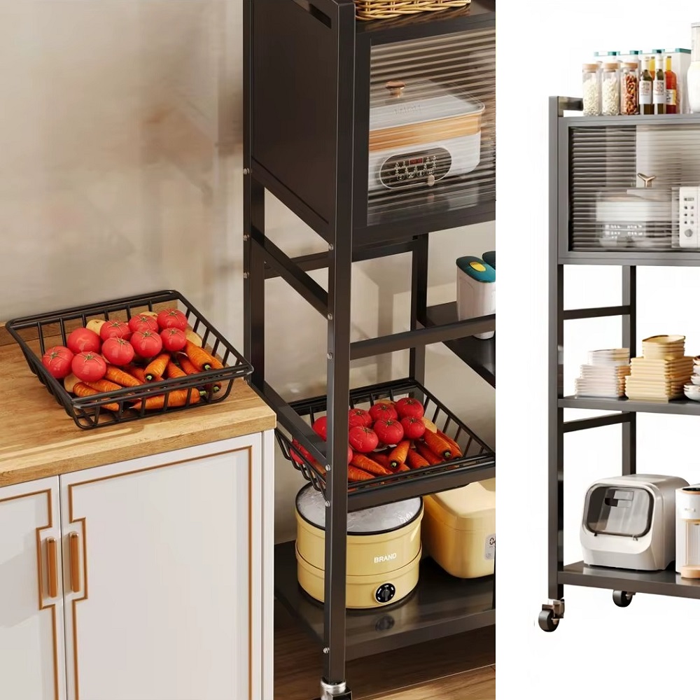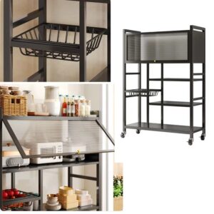 este estante de almacenamiento está diseñado para hacer que tus alimentos de cocina estén perfectamente organizados. Perfecto para ser tu soporte de microondas, gabinete de barra de café, estante para panaderos, organizador de especias, estante de almacenamiento de oficina para ofrecer el apoyo a tus artículos de cocina.