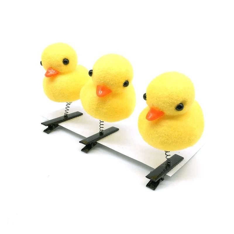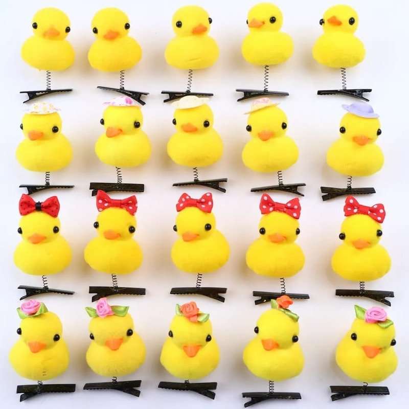 - Hermosos ganchitos para el cabello en forma de patito de color amarillo.