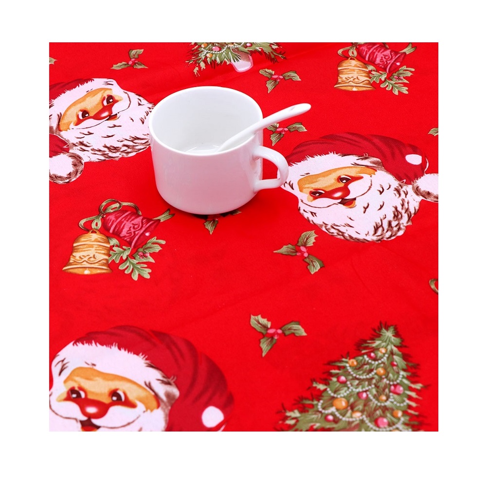 Protector oblongo multiusos de 235×150 cm, 100 por ciento de poliéster para buffet de comida, bodas, fiesta de cumpleaños, cena de Navidad, mantel de moda características patrón de campana de Santa impreso.