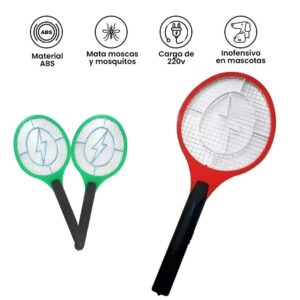 Es efectiva, fácil de usar y recargable. Matas moscas, avispas, mosquitos y otros bichos de un solo golpe sin manchar las paredes. Solo toca al insecto y listo, la corriente eléctrica de la rejilla interna lo alcanzará.