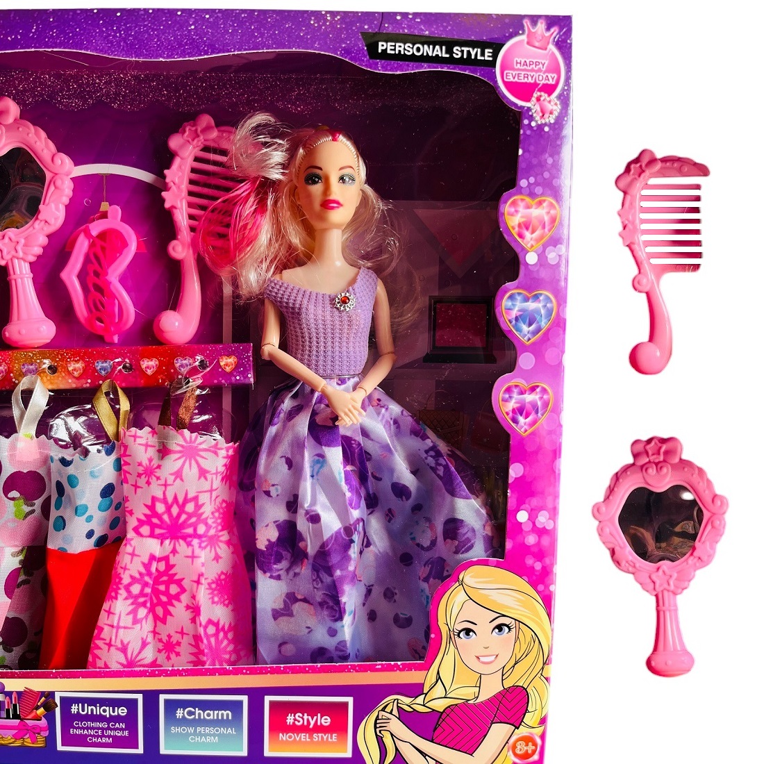 Este juguete es ideal para el regalo de tus niñas. Es muy fácil de llevar a todos los lugares debido a su tamaño pequeño. Tu hija se divertirá mucho cumpliendo el papel de vestir a la muñeca con todos los vestidos incluidos.