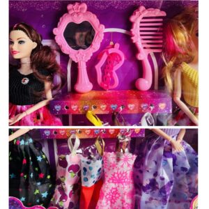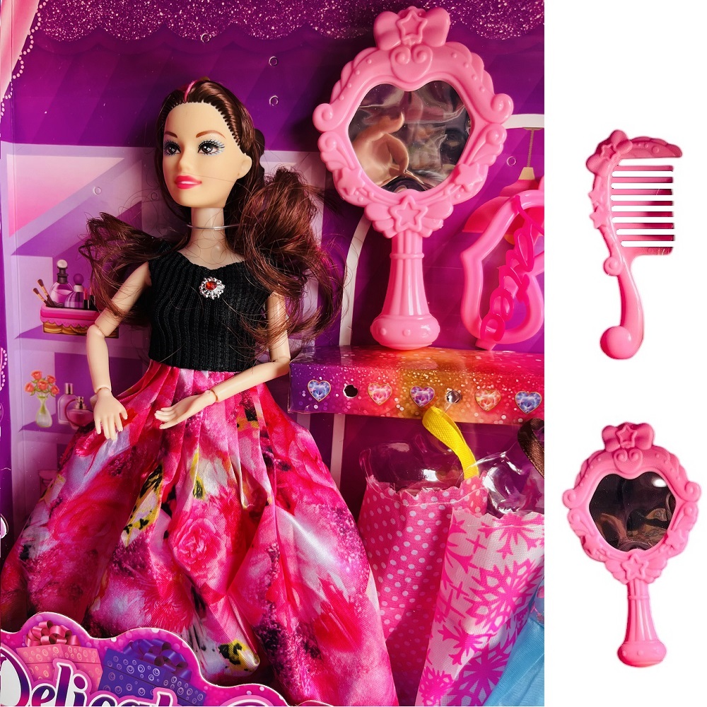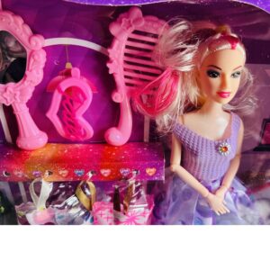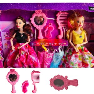 Cuenta con diferentes accesorios lo que lo vuelven único en el mercado, incluye un peina, un espejo, un gancho, 3 cambios de vestidos adicional y dos muñecas ya vestidas