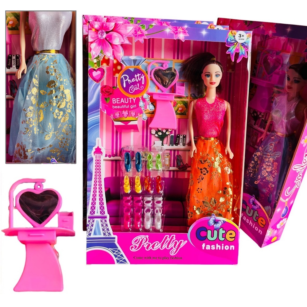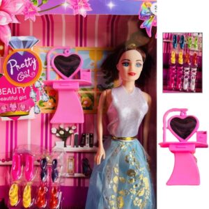 Cuenta con diferentes accesorios lo que lo vuelven único en el mercado, incluye un tocador, 6 pares de zapatos y una muñeca ya vestidas.