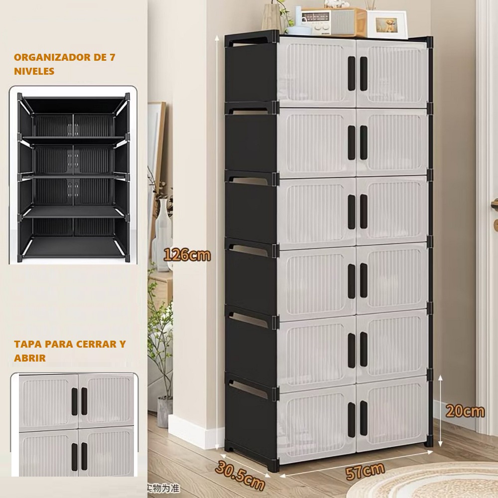 zapatera con puertas y cajones 6 niveles